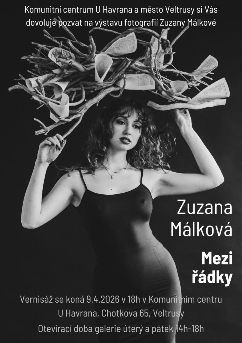 Komunitní centrum U Havrana a město Veltrusy a si vás dovolují pozvat ve čtvrtek 9. dubna 2026 v 18 hodin na vernisáž fotografií Zuzany Málkové do Komunitního centra U Havrana.